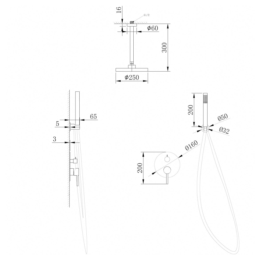 Душевые системы скрытого монтажа / Душевая система ABBER Emotion AF8821 скрытого монтажа без излива, хром