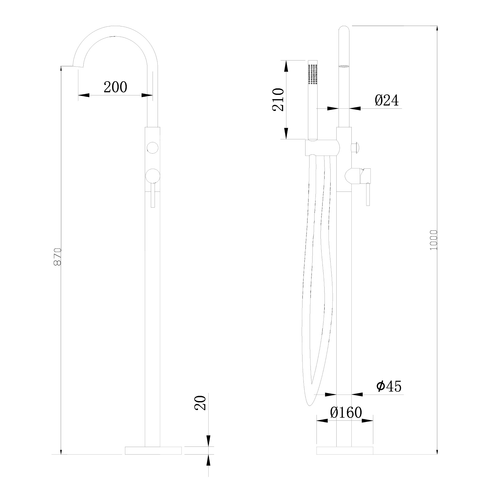Смеситель ABBER Wasser Kreis AF8115 напольный для ванны, хром