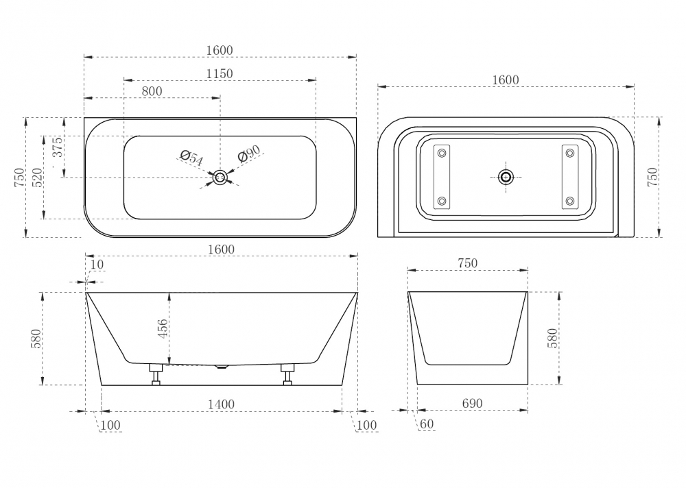 Отдельностоящие ванны / Акриловая ванна ABBER AB9223-1.6 белая