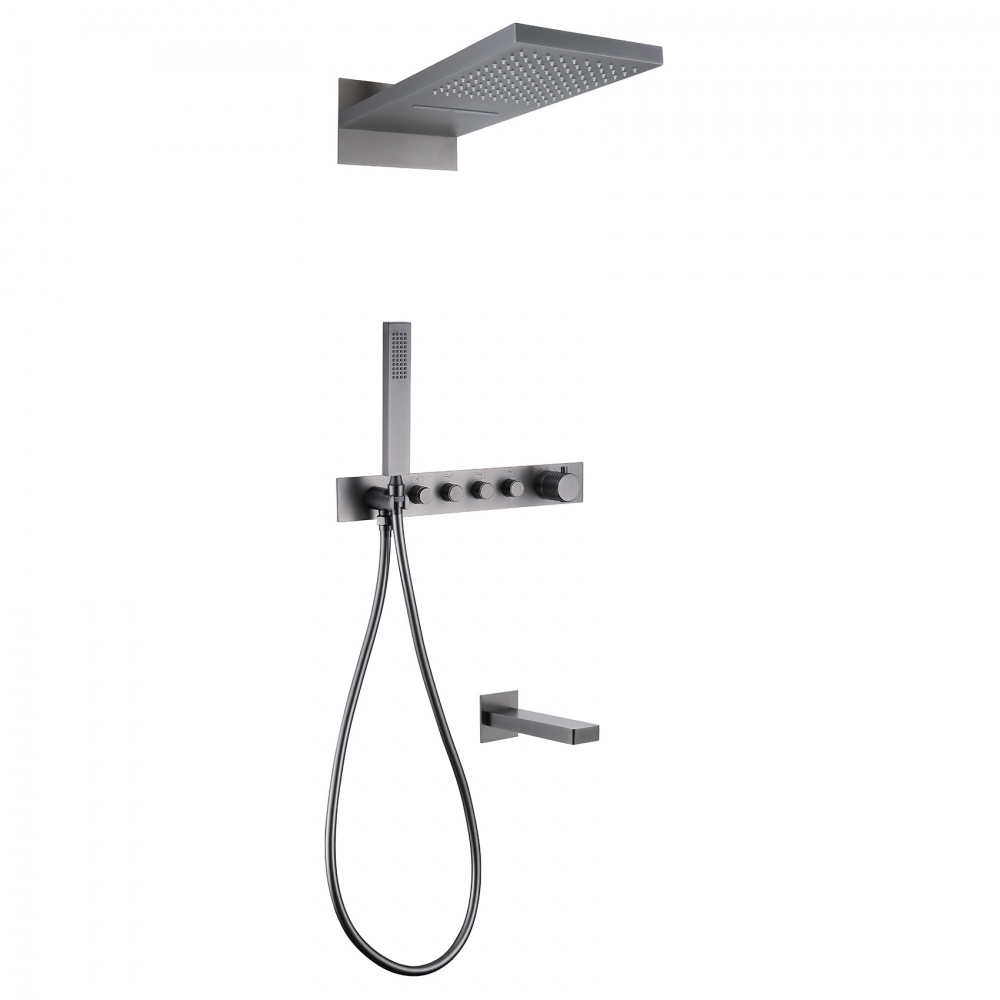 Душевая система ABBER Rund AF8753NG скрытого монтажа с изливом, с термостатом, оружейная сталь